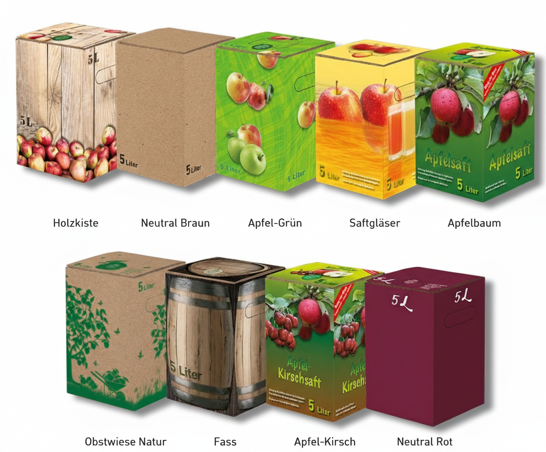 Unsere hochwertigen Bag in Box Kartons sind ideal für Mostereien, die auf Qualität und Langlebigkeit setzen. Hergestellt aus strapazierfähigen Frischfaserpapier mit Doppel E Welle und Automatikboden bieten sie maximale Stabilität – ideal für die Abfüllung und Lagerung von Wein, Apfelsaft, Most oder anderen Fruchtsäften. Ebenfalls sehr beliebt in den Bereichen Flüssigei, Öl- oder Molkereiprodukte.