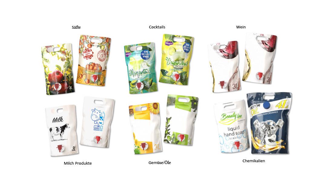 Standbodenbeutel eignen sich ideal für Lebensmittel wie Säfte, Wein, Sirup oder Öle, aber auch für technische, chemische oder kosmetische Anwendungen. Ihr geringes Eigengewicht und das reduzierte Verpackungsvolumen tragen zudem zu niedrigeren Transportkosten und einer verbesserten Umweltbilanz bei.
